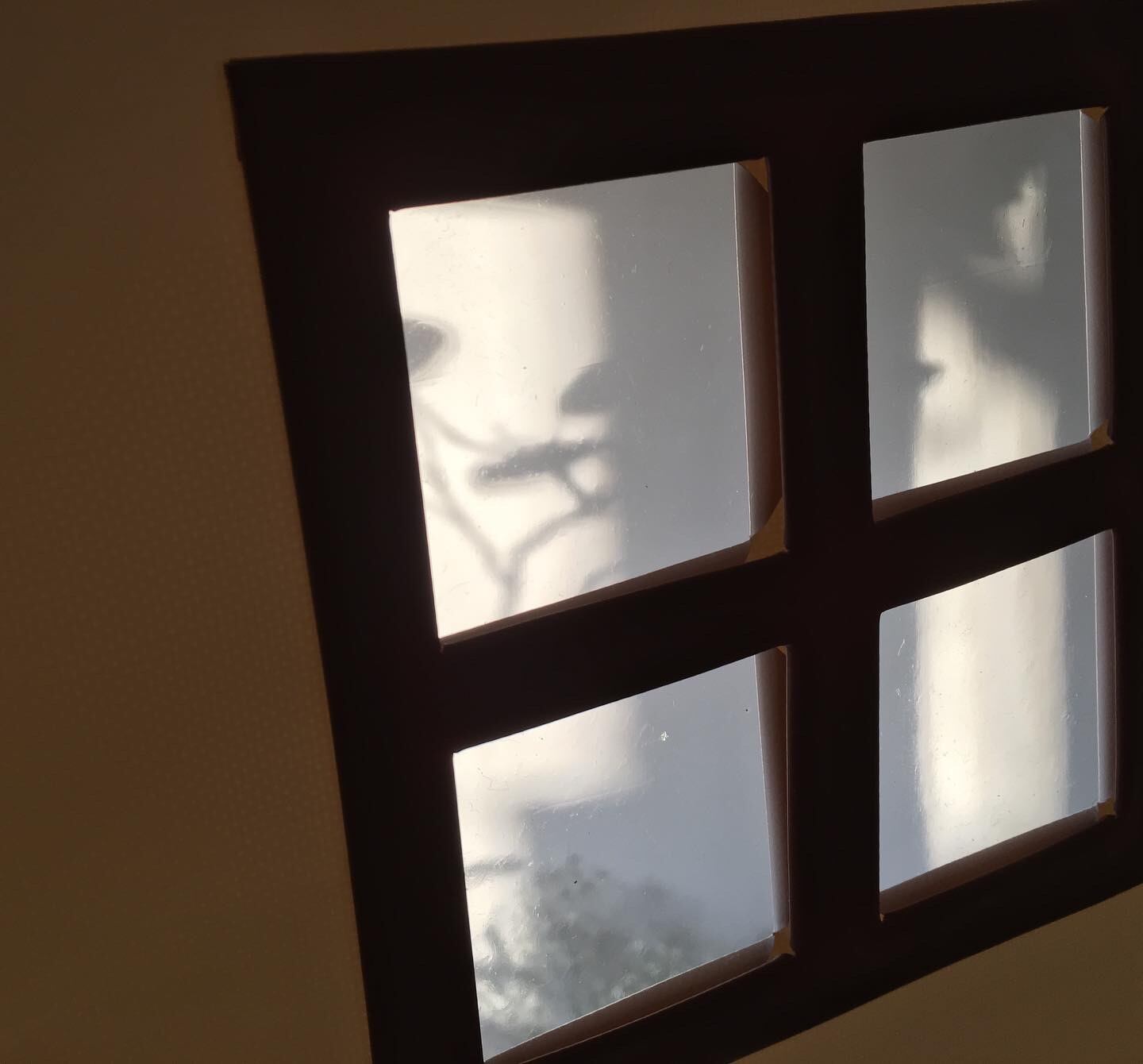 透明ナイロンを窓ガラスに見立てて作ってあります。