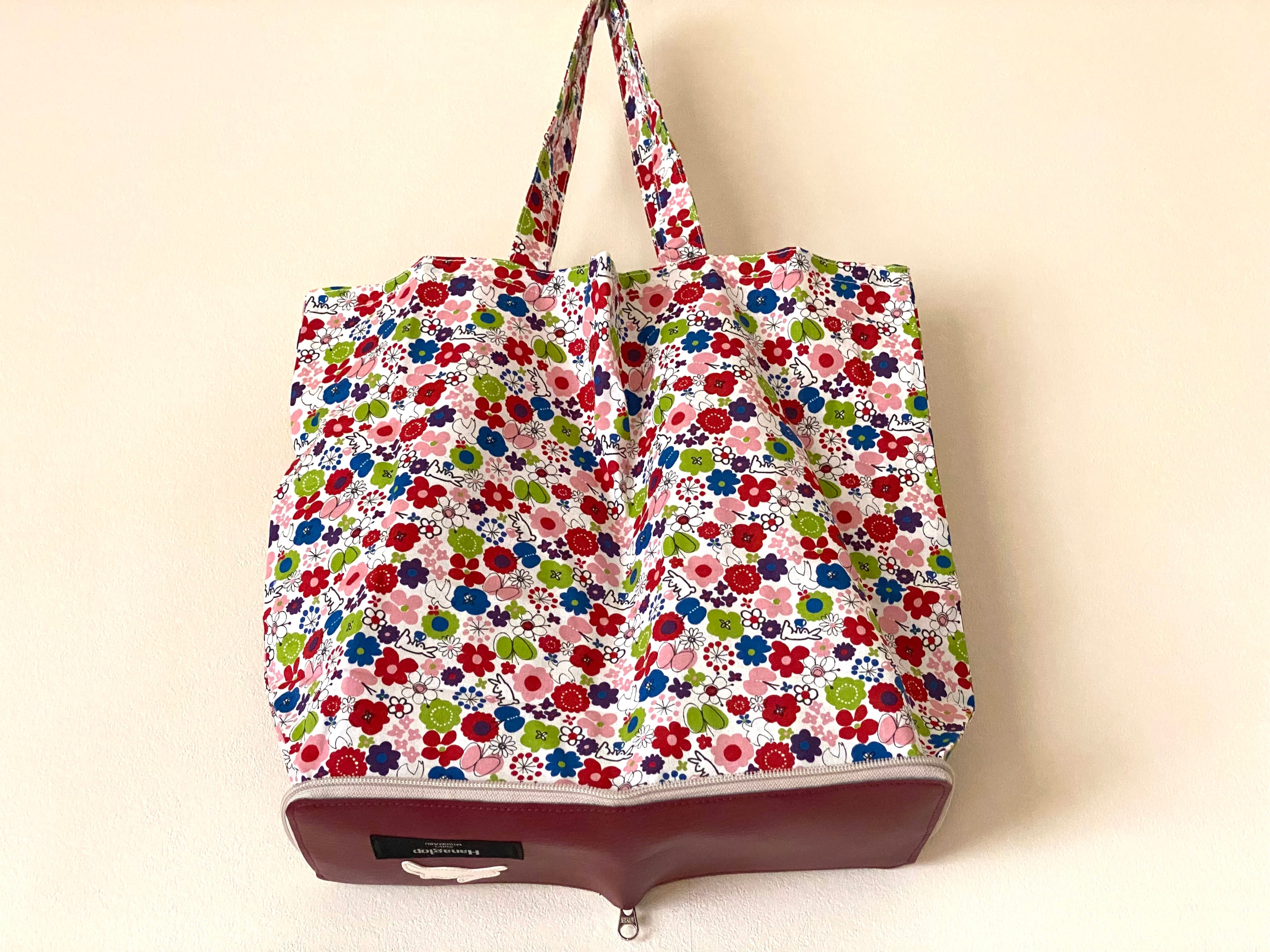 ファスナーを開けるとバッグが出てきて、ポーチ部分が底になります。