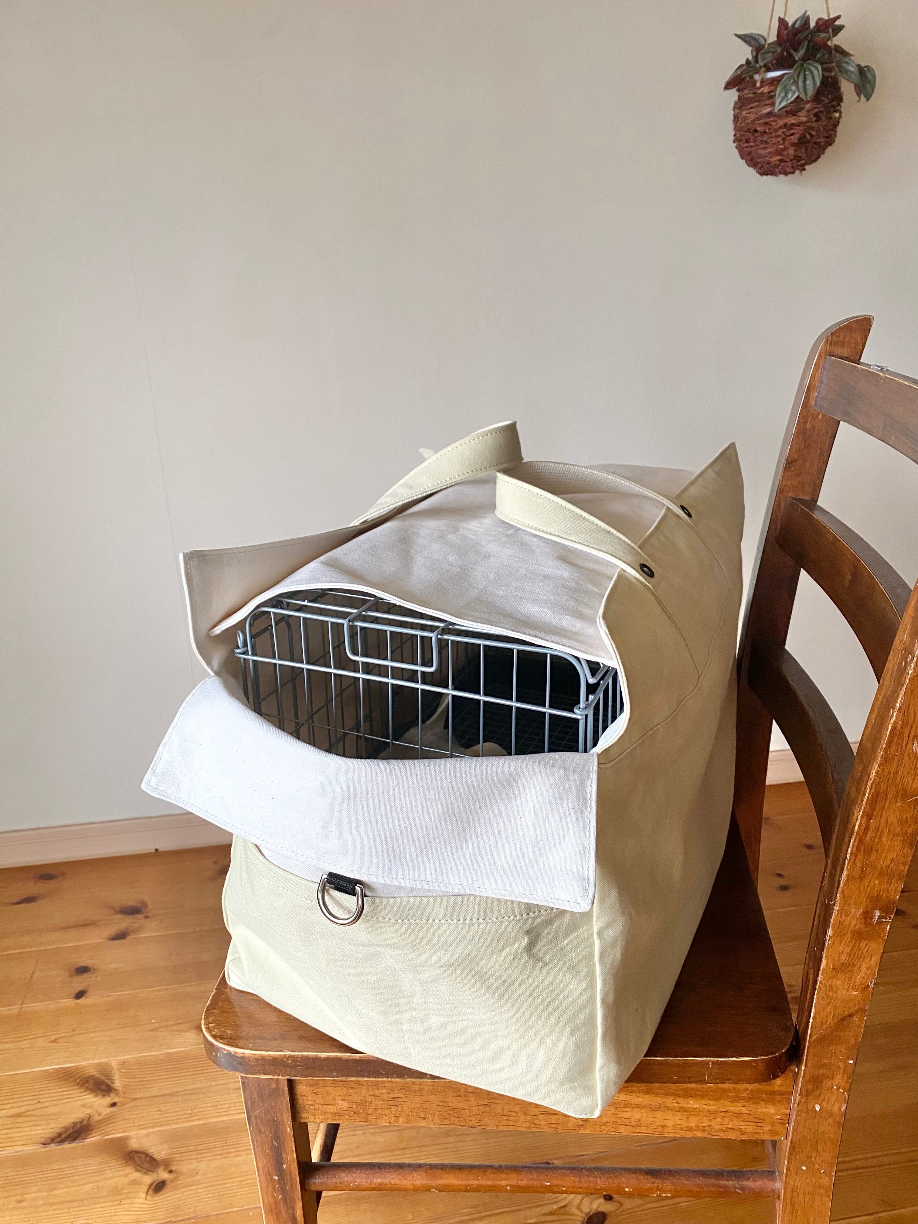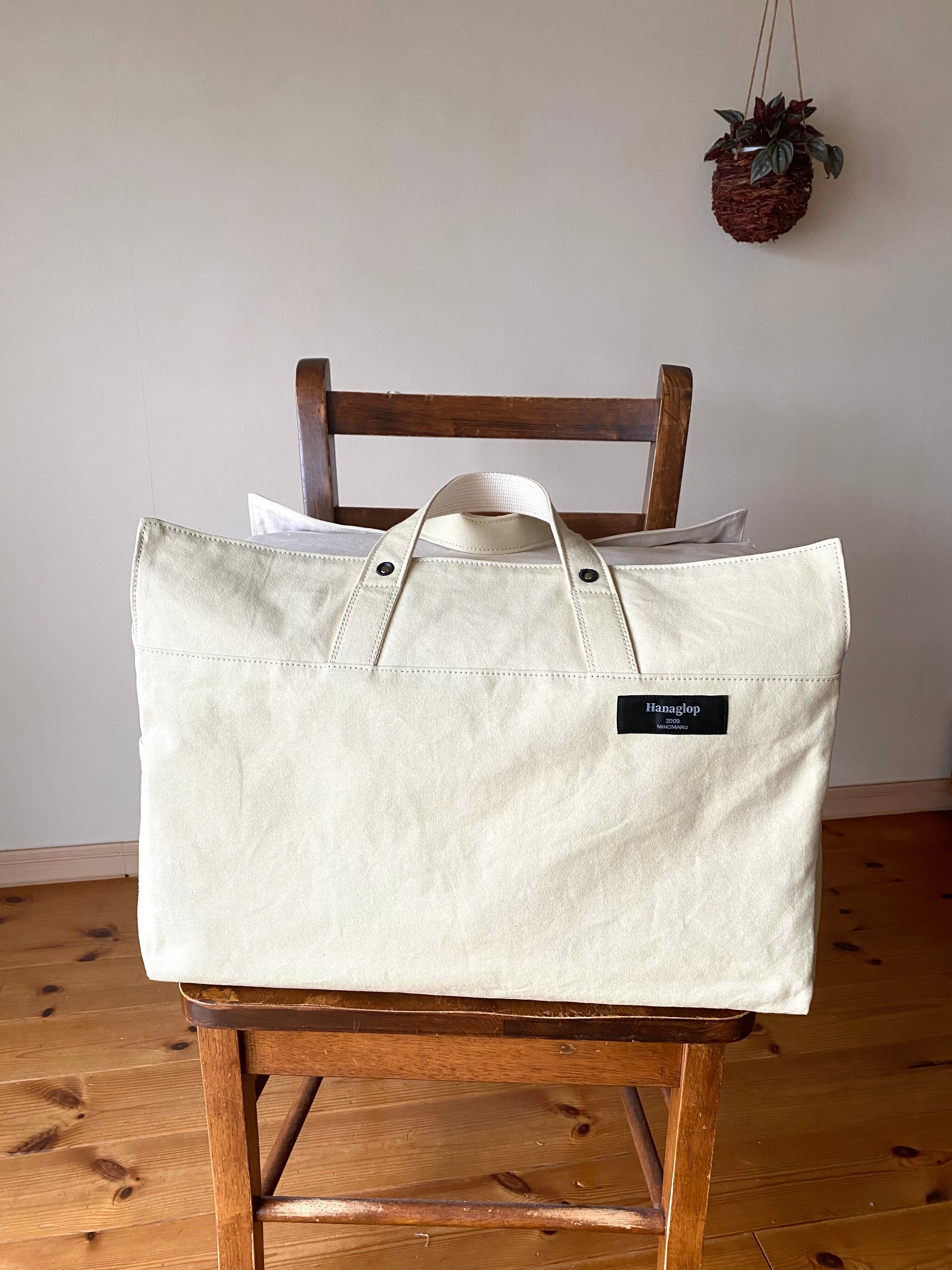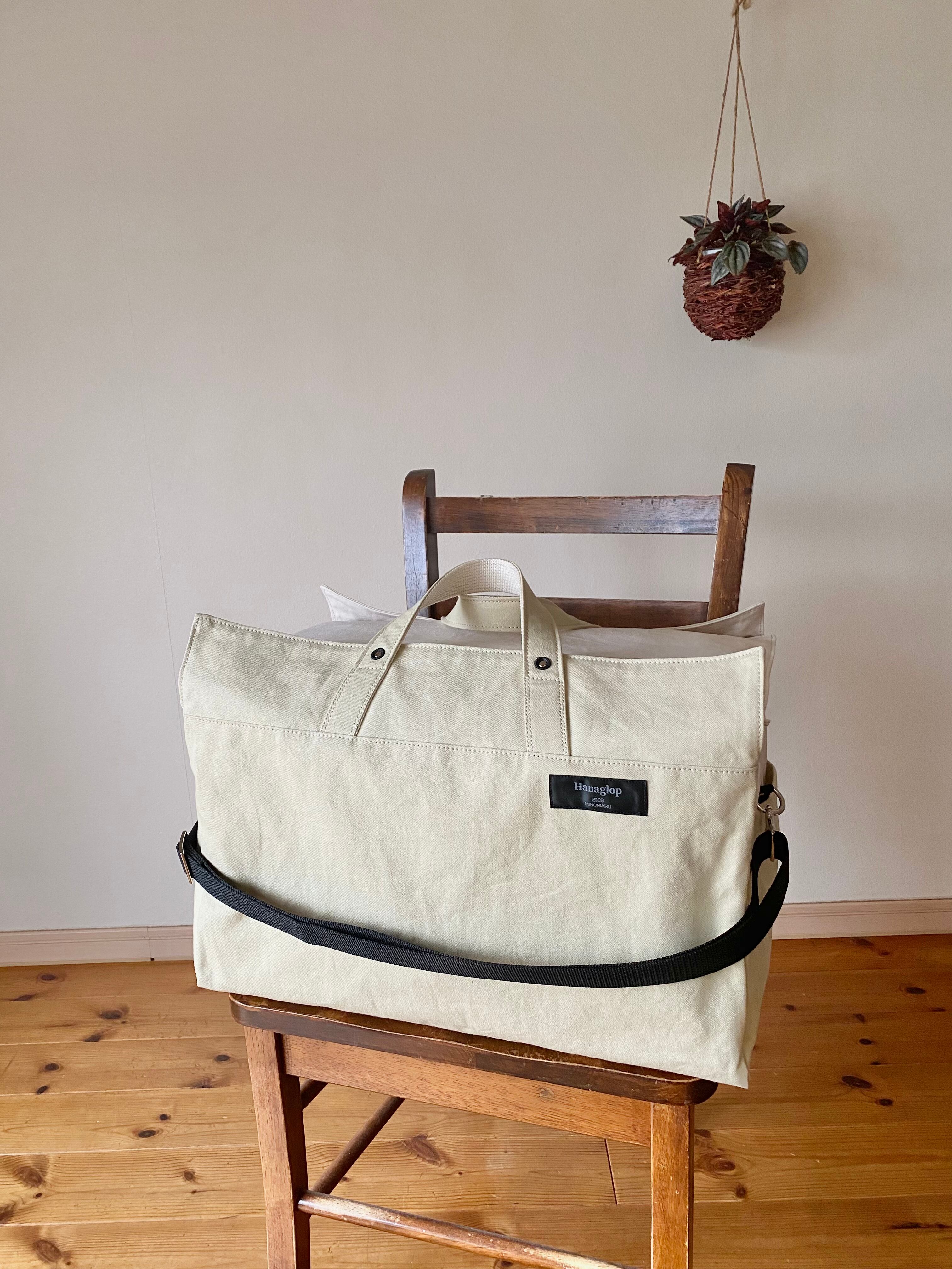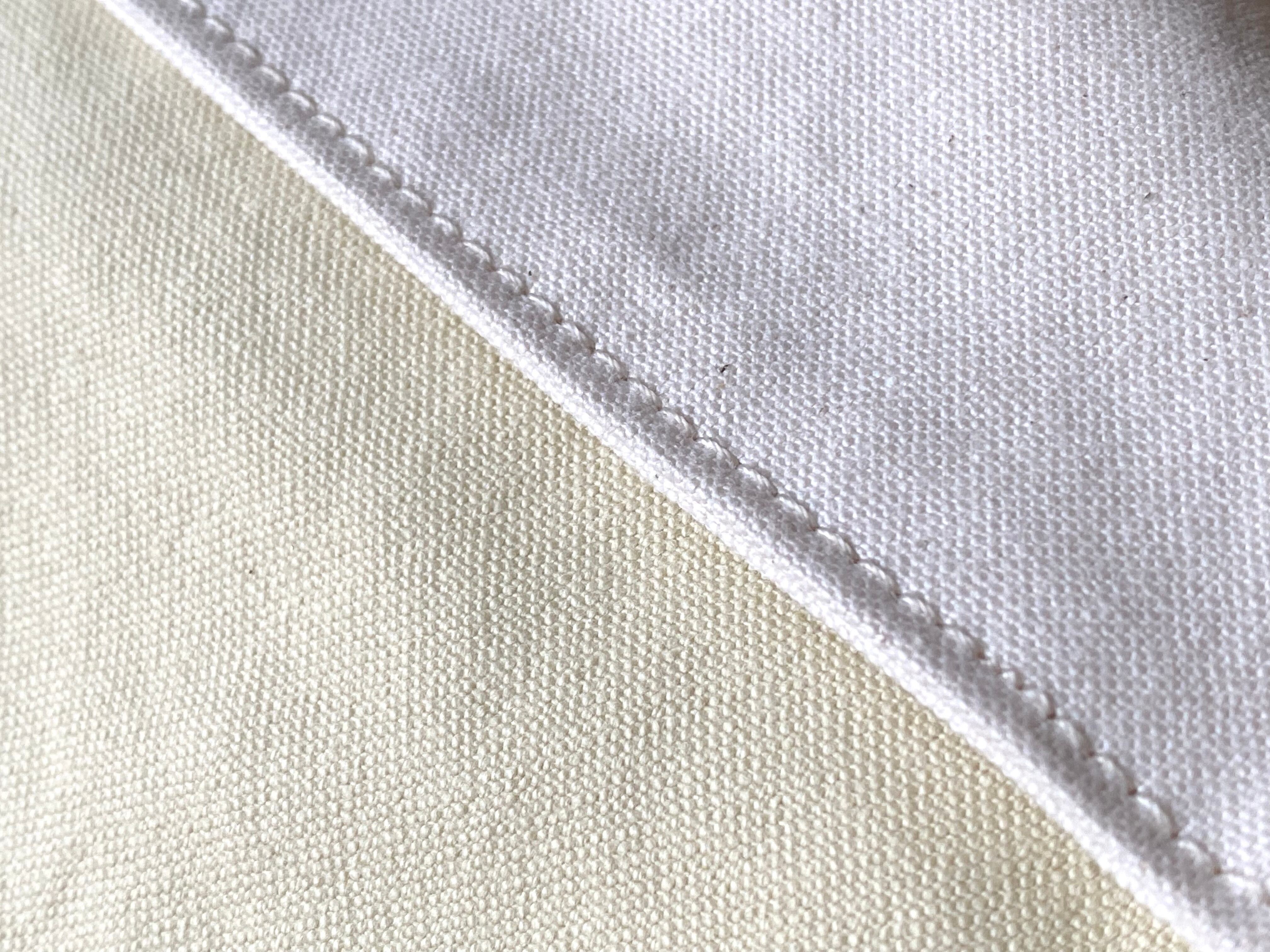 クリーム色帆布と生成り帆布を使用しています。どちらも国産です。丁寧に織られた帆布です。