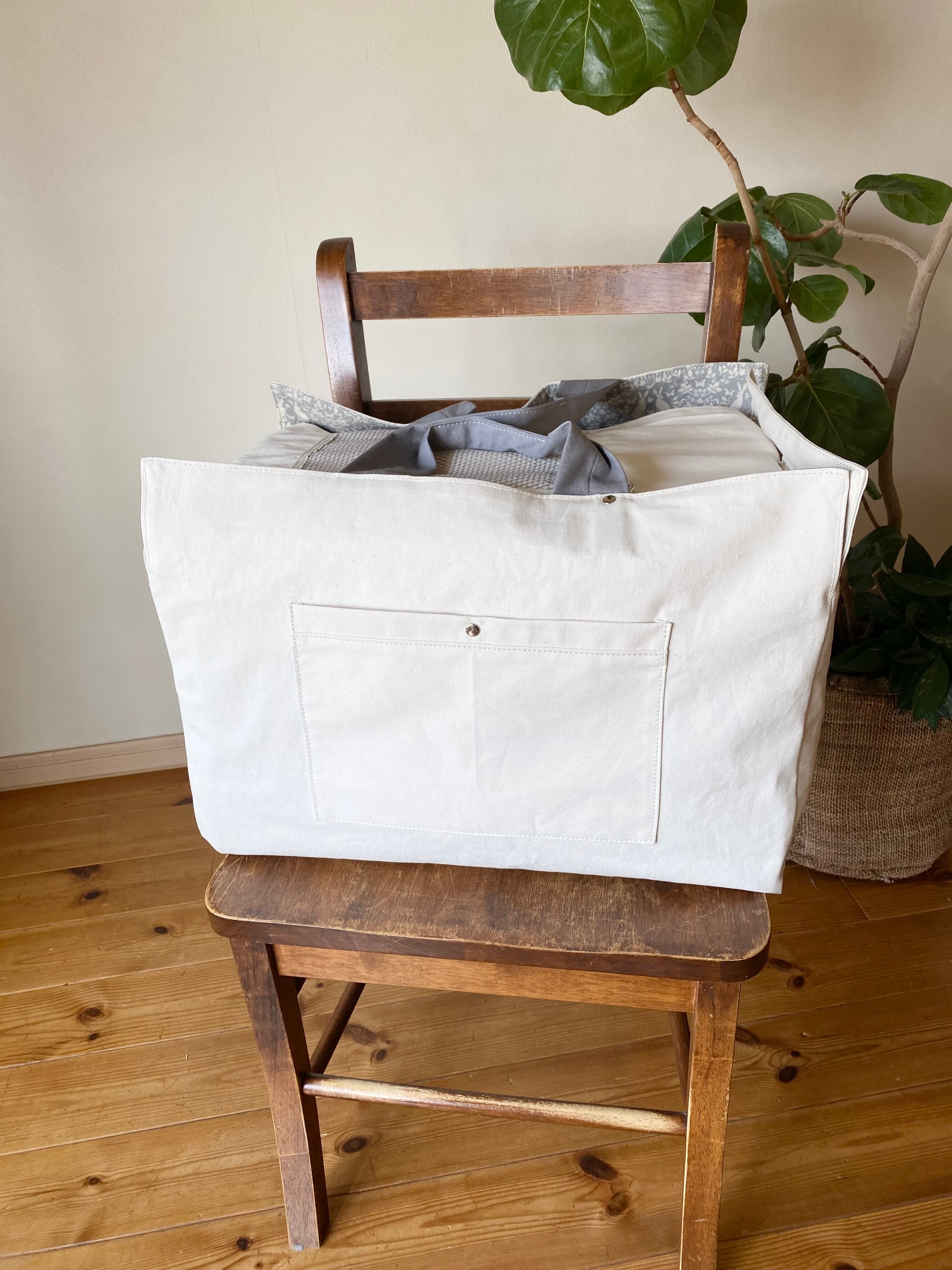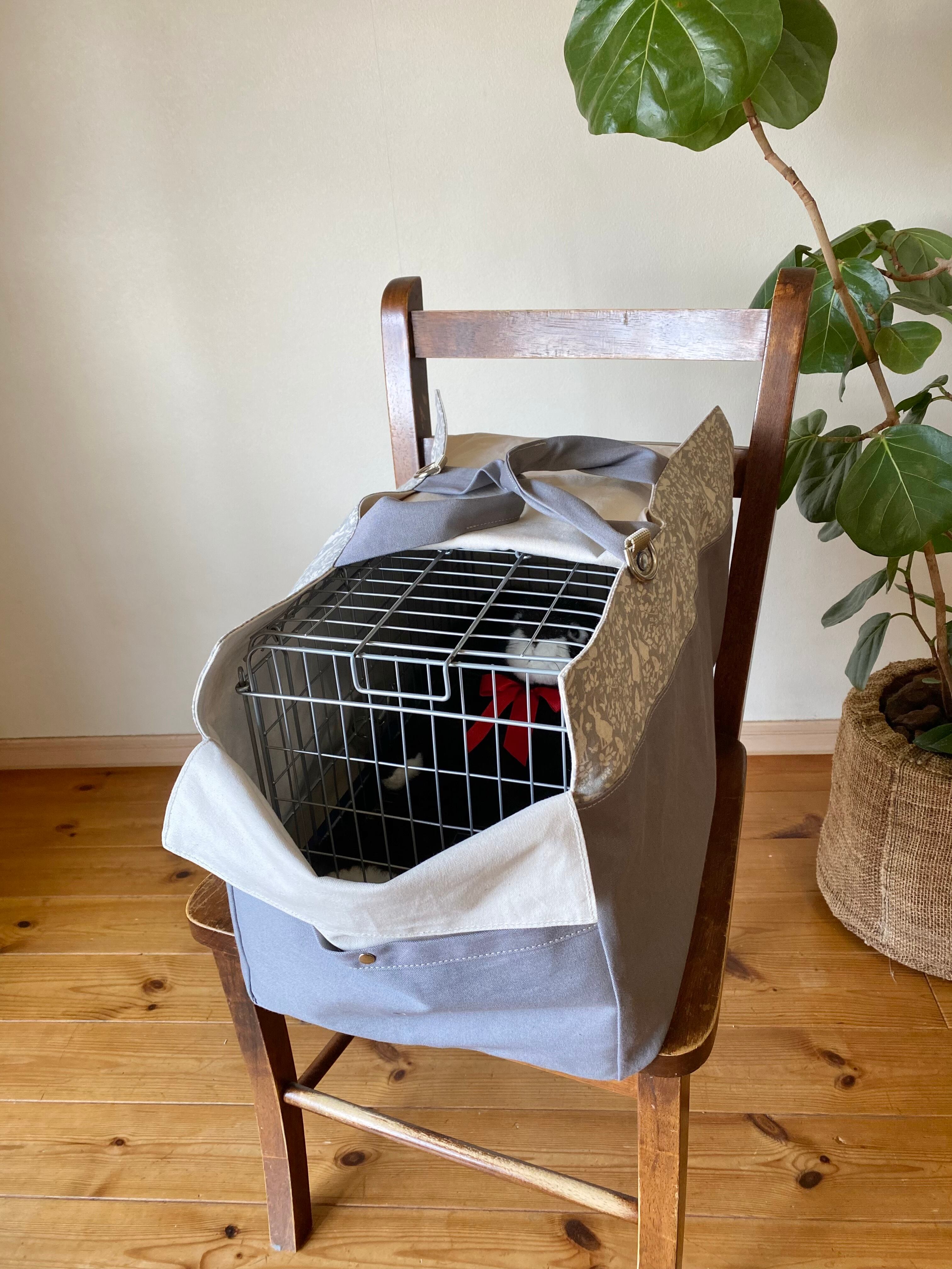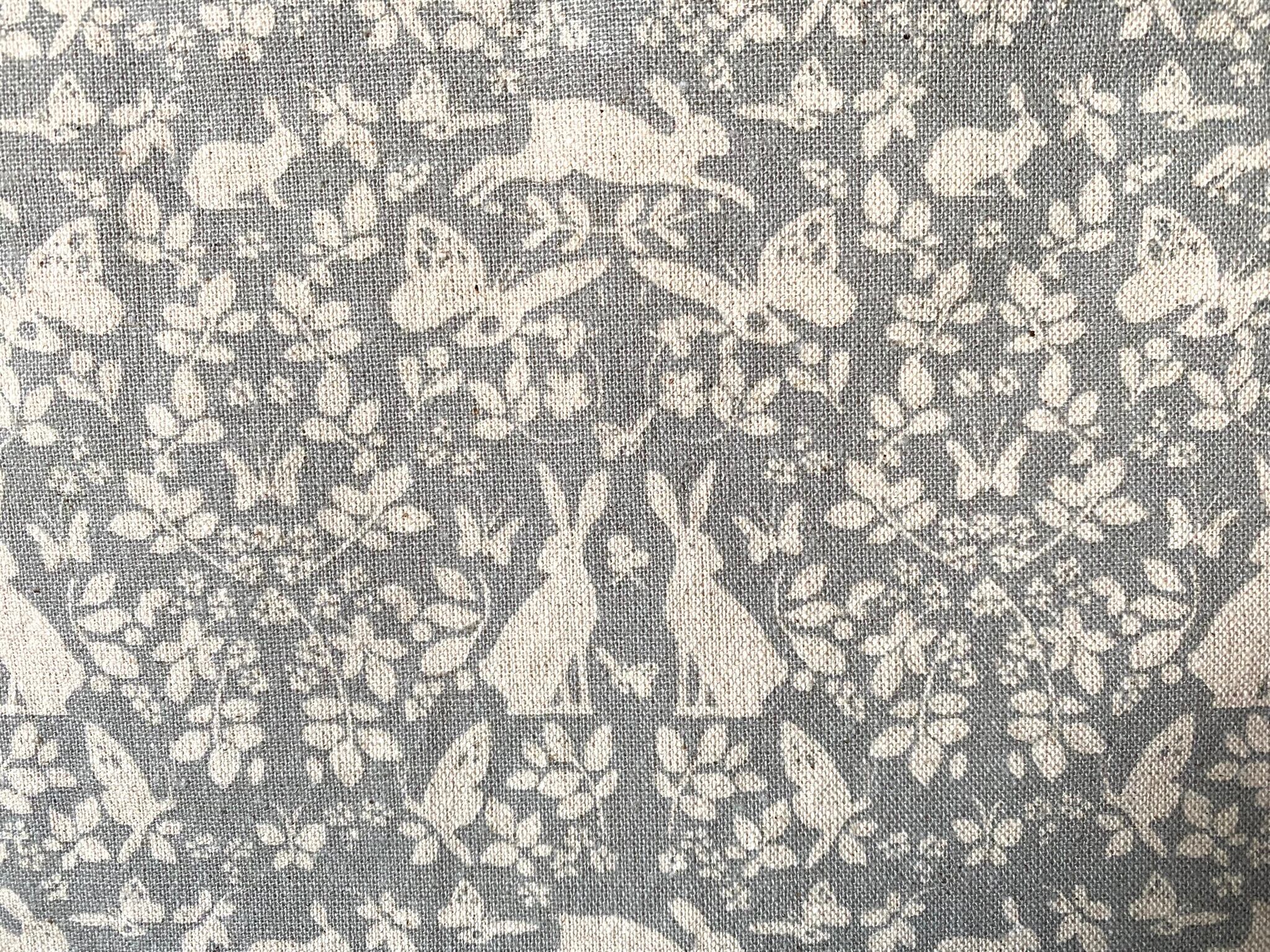 表側➡︎綿麻のウサギ柄、生成り国産帆布 水通し済みです。